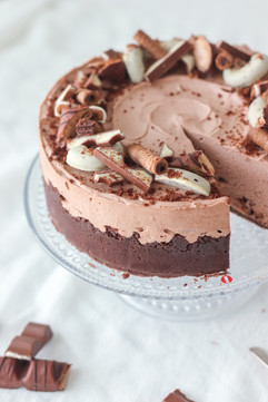 Irroita vuoka kakusta ja poista reunakalvo. Siirrä kakku leivinpaperin avulla tarjoilulautaselle.